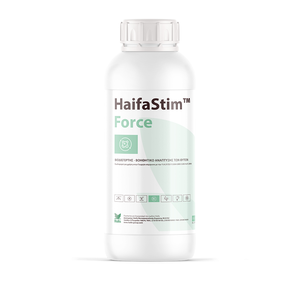 HaifaStim™ Force is a natural biostimulant in liquid form. Its special mix of only plant-based ingredients, which includes 8.5% free L-amino acids and peptides, polysaccharides, osmolytes (like betaine and mannitol), and plant hormones, makes HaifaStim™ Force perfect for use during every growth stage of all cultivated plants.