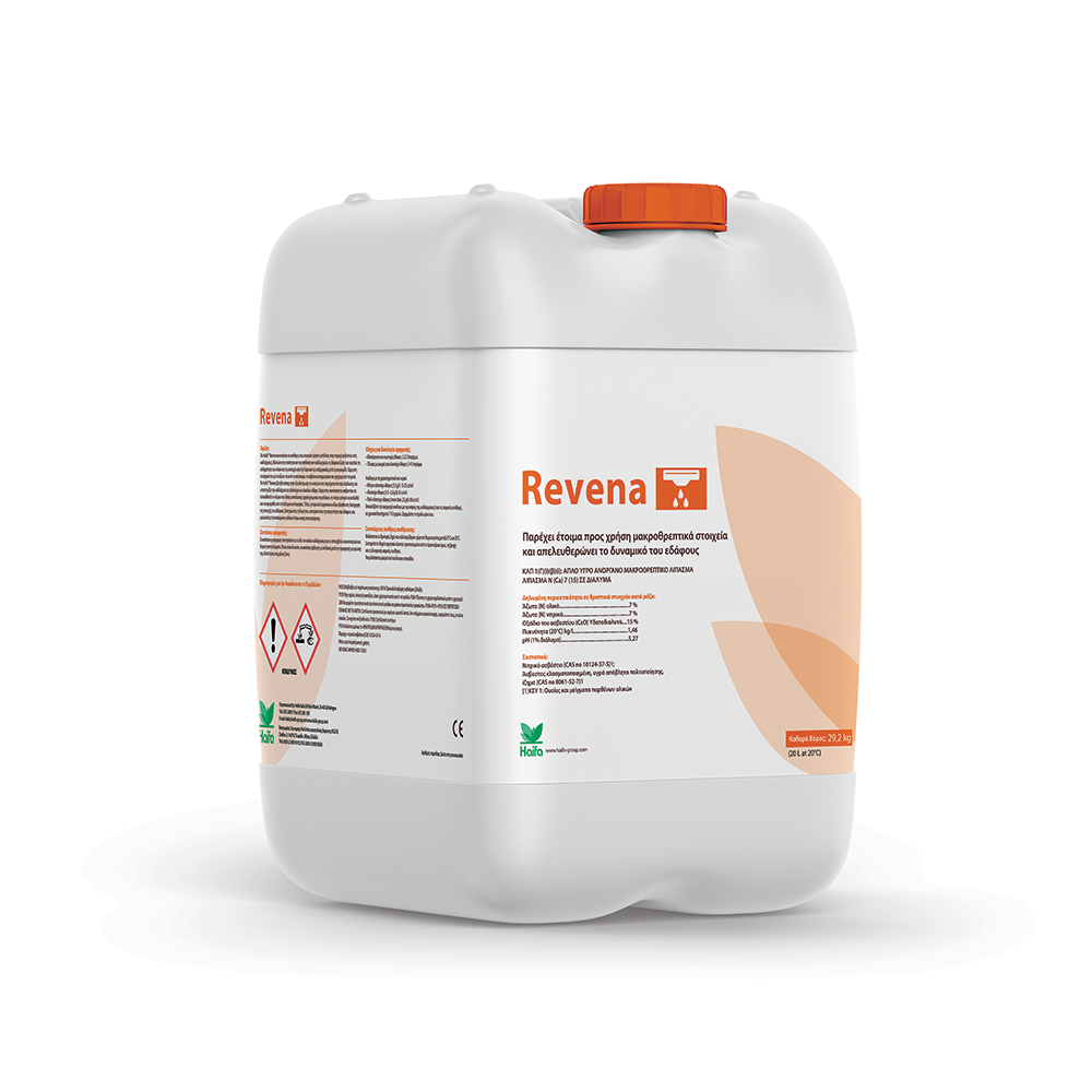 To Revena είναι ένα απλό υγρό ανόργανο μακροθρεπτικό λίπασμα ασβεστίου σε διάλυμα για την καταπολέμηση της αλατότητας. Περιέχει μακροθρεπτικά στοιχεία και συμβάλλει στην εξουδετέρωση της παρουσίας νατρίου στο νερό άρδευσης, υποστηρίζοντας την καλλιέργεια σε αλατούχα και αλκαλικά εδάφη.