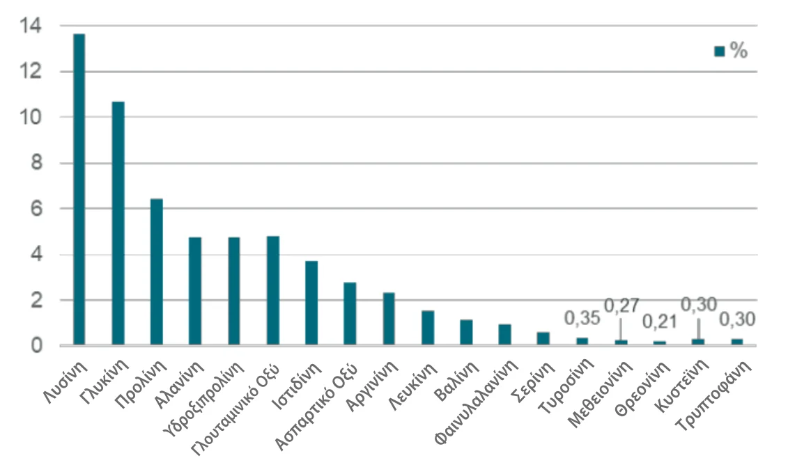 | Ολικά αμινοξέα & πεπτίδια | 51.9% |